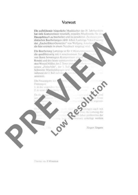 Digital Sheet Music for Overture - Choral Score by Wolfgang Amadeus Mozart, Albert Lortzing scored for Men's Choir (ttbb); id:471794
