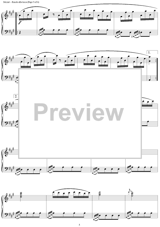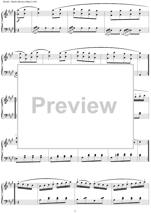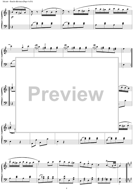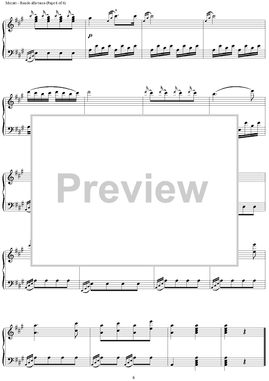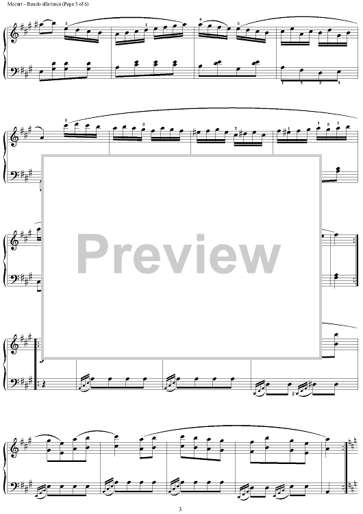 Digital Sheet Music for Rondo Alla Turca, from Sonata A Major KV331 by Wolfgang Amadeus Mozart scored for Piano Solo; id:284746