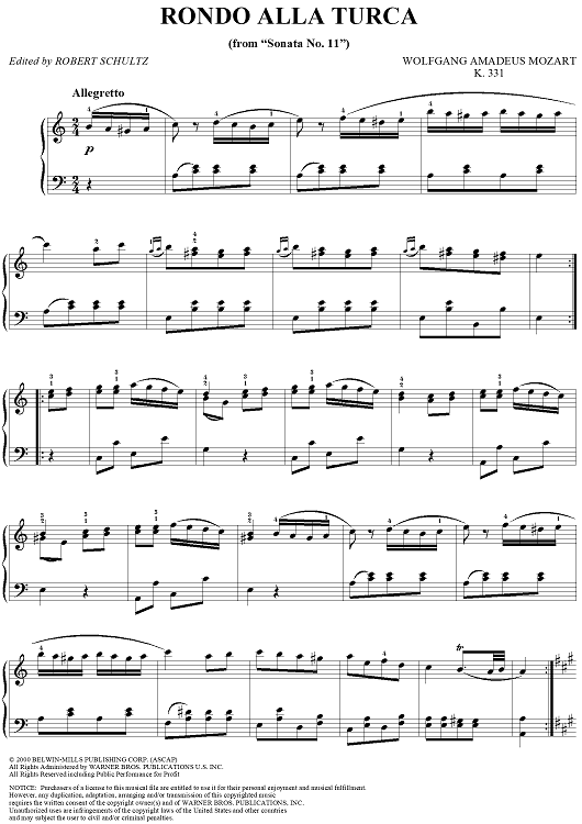 "Rondo Alla Turca, from Sonata A Major KV331" Sheet Music by Wolfgang Amadeus Mozart