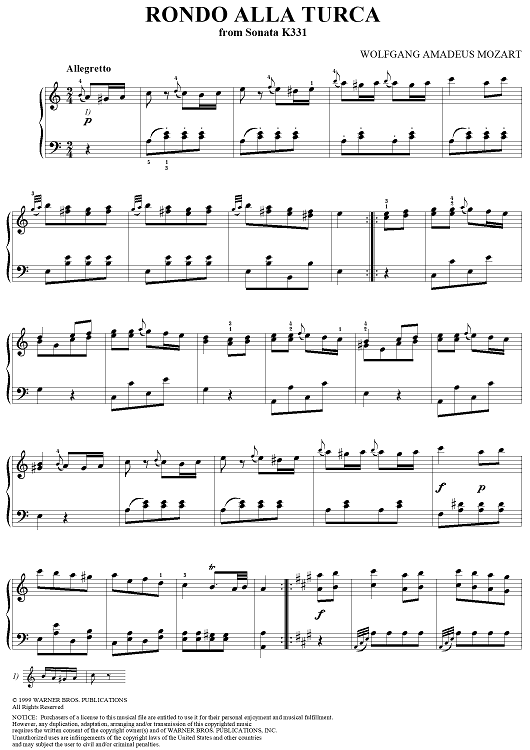 "Rondo Alla Turca, from Sonata A Major KV331" Sheet Music by Wolfgang Amadeus Mozart