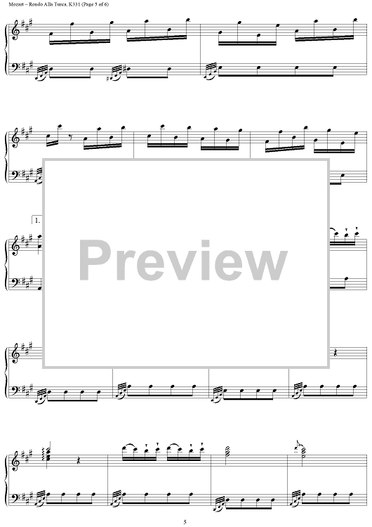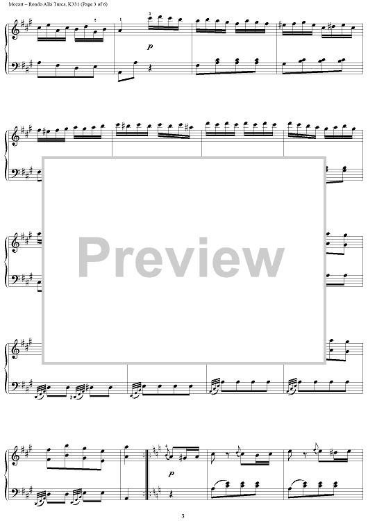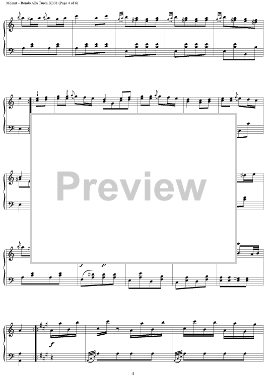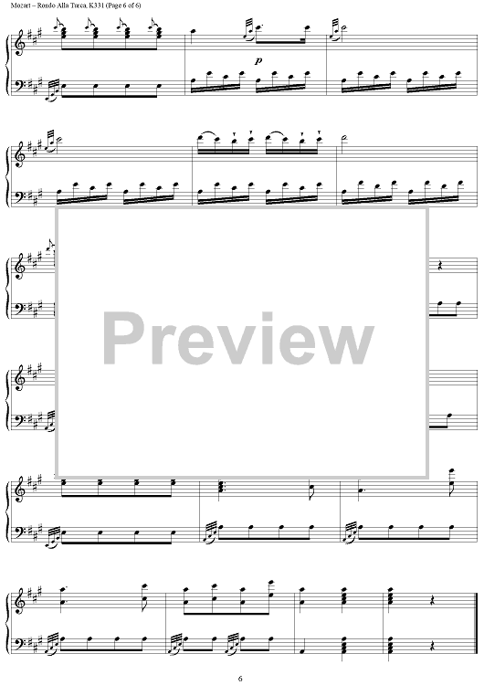Digital Sheet Music for Rondo Alla Turca, from Sonata A Major KV331 by Wolfgang Amadeus Mozart scored for Piano Solo; id:295620