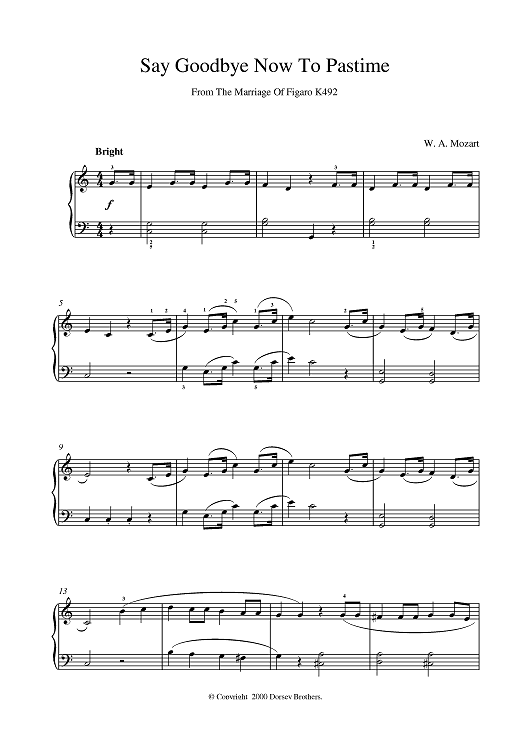 Digital Sheet Music for Say Goodbye Now To Pastime From The Marriage Of Figaro K492 by Wolfgang Amadeus Mozart scored for Piano; id:382403