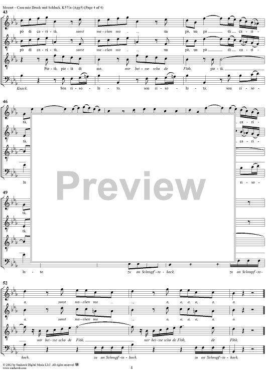 Digital Sheet Music for Scherzhaftes Quartett (Fragment), K571a by Wolfgang Amadeus Mozart scored for Four-part Mixed Chorus; id:262631