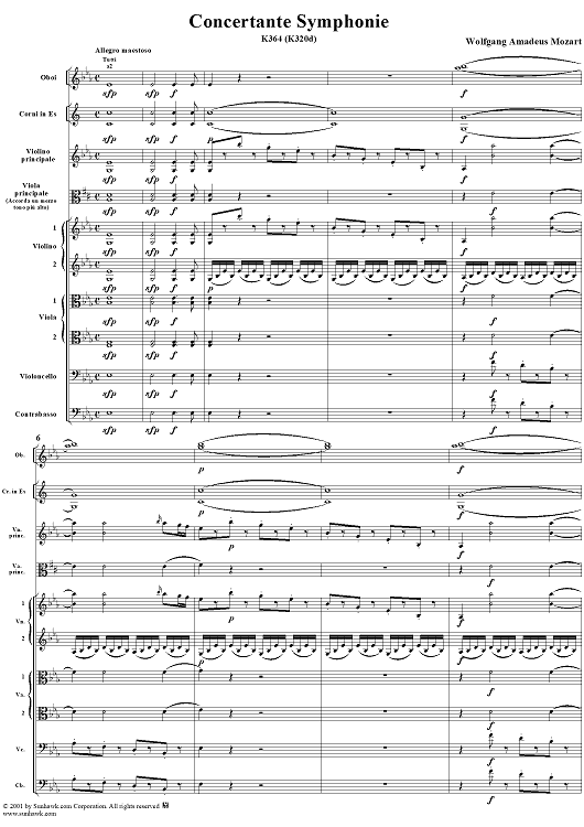 Digital Sheet Music for Sinfonia Concertante in E-flat Major, K364 - Full Score by Wolfgang Amadeus Mozart scored for Orchestra; id:276855
