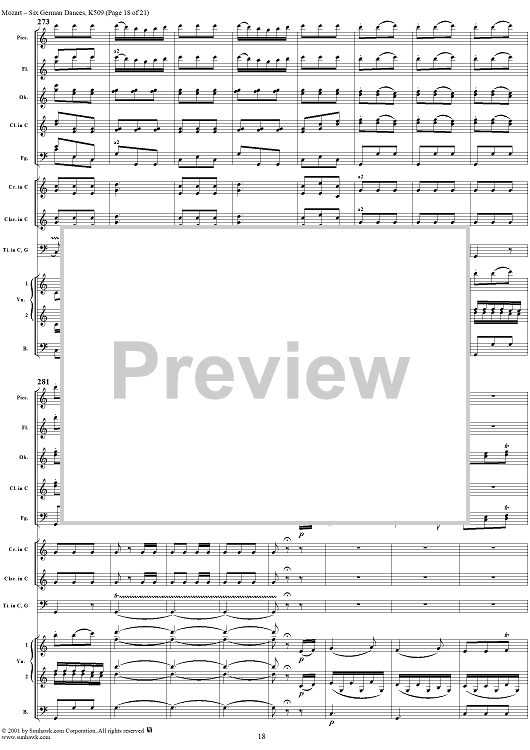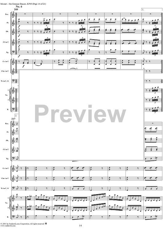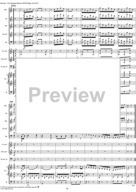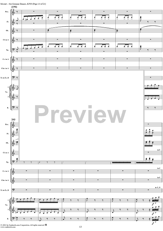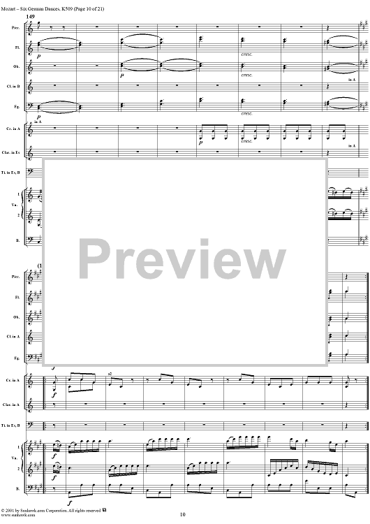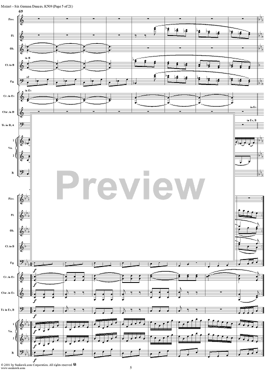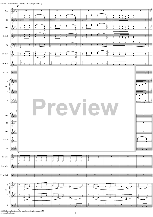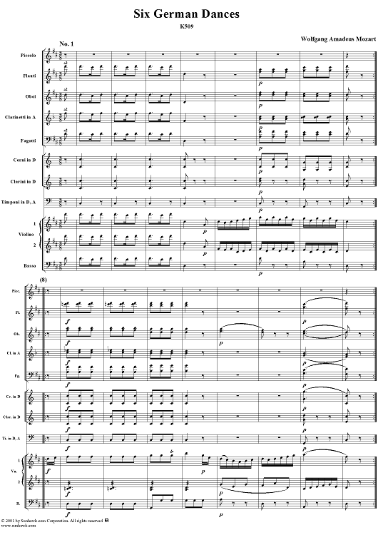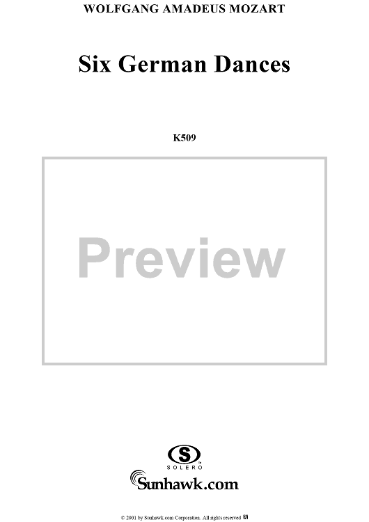 Digital Sheet Music for Six Deutsche Tänze, K509 by Wolfgang Amadeus Mozart scored for Orchestra; id:250343