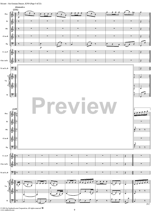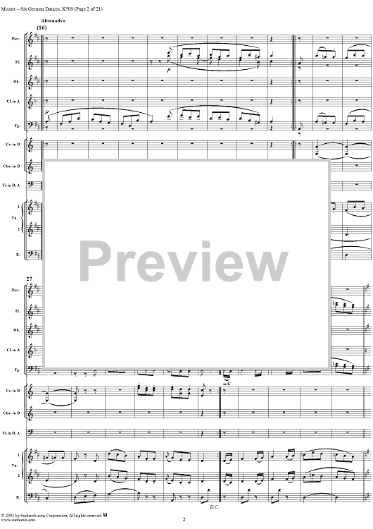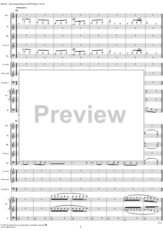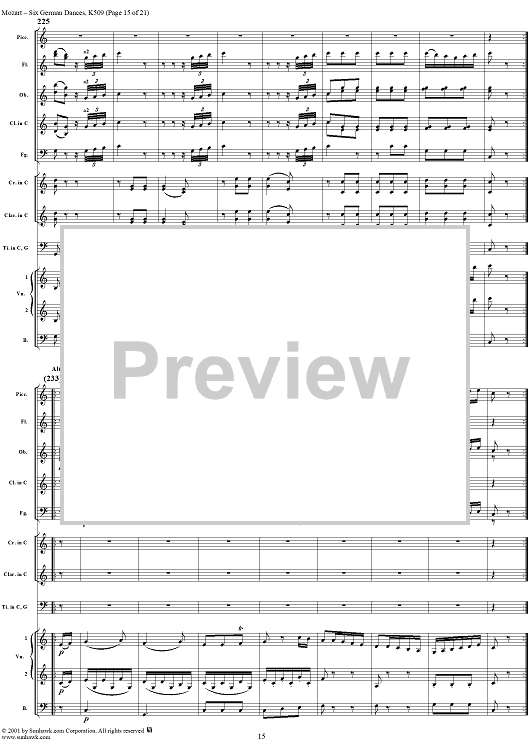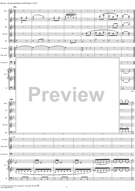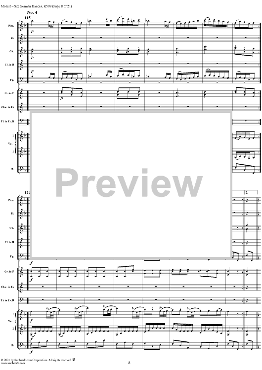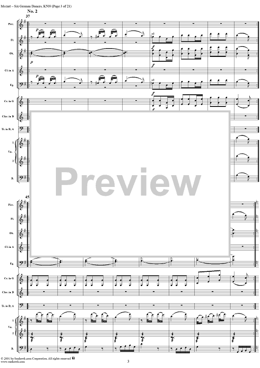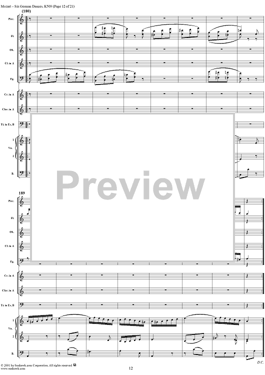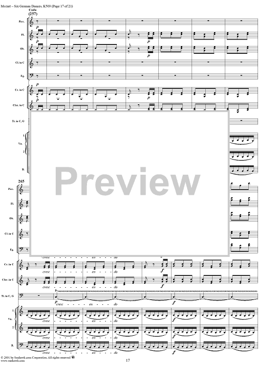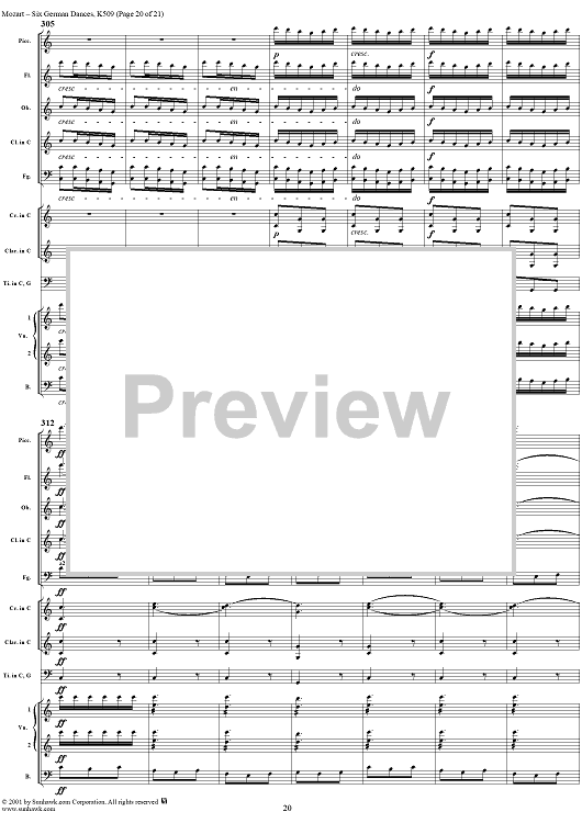 Digital Sheet Music for Six Deutsche Tänze, K509 by Wolfgang Amadeus Mozart scored for Orchestra; id:250343
