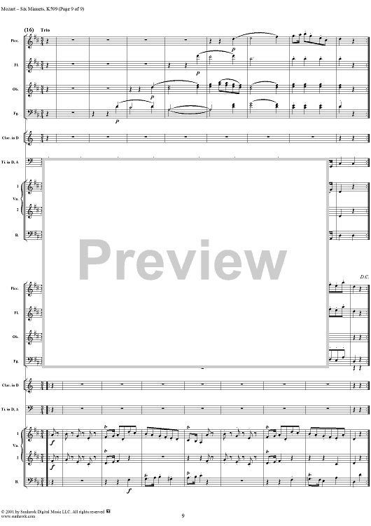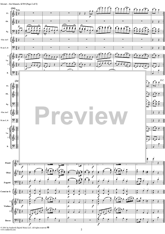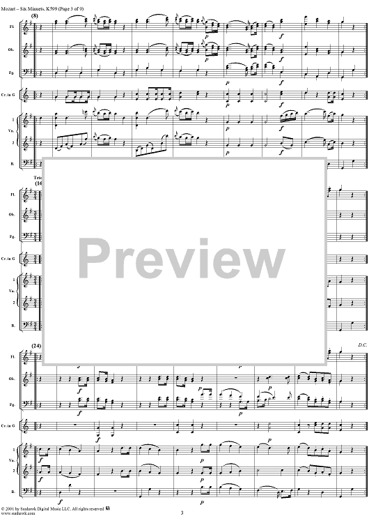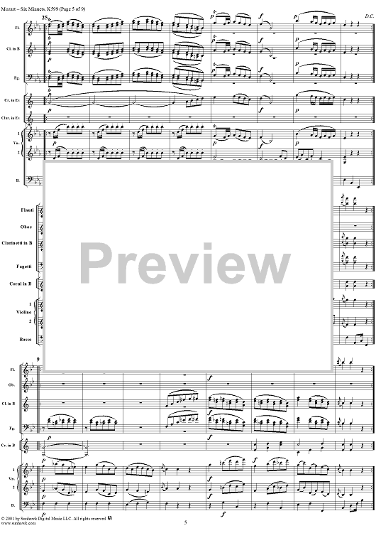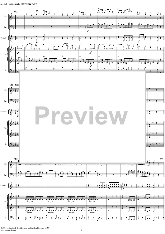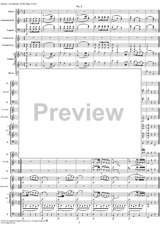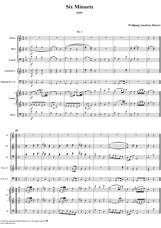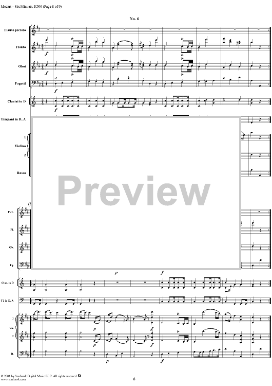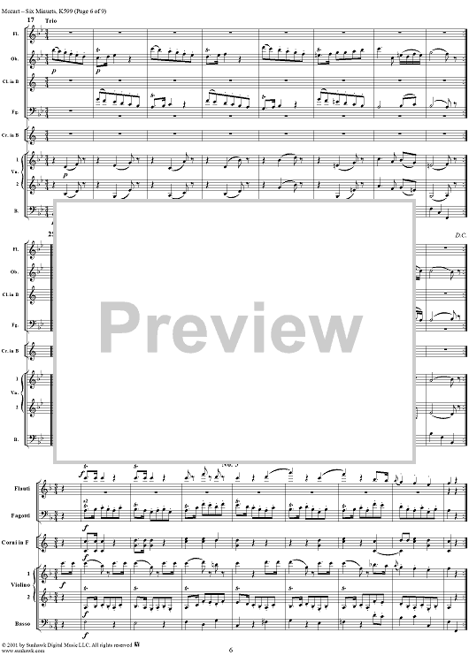 Digital Sheet Music for Six Menuette, K599 by Wolfgang Amadeus Mozart scored for Orchestra; id:254440