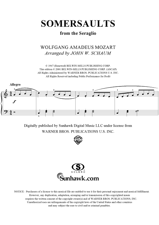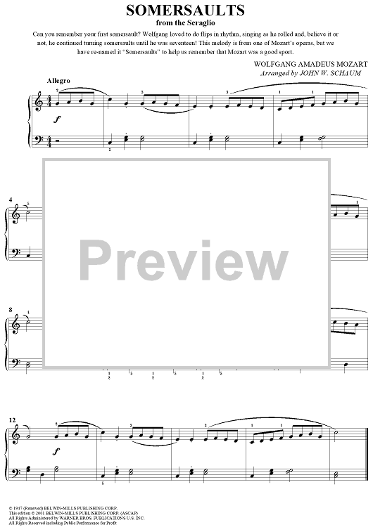 Digital Sheet Music for Somersaults (from the Seraglio) by Wolfgang Amadeus Mozart, John W. Schaum scored for Piano Solo; id:293126