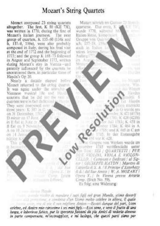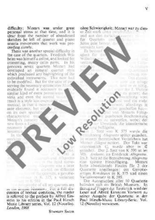 "String Quartet A major - Full Score" Sheet Music by Wolfgang Amadeus Mozart