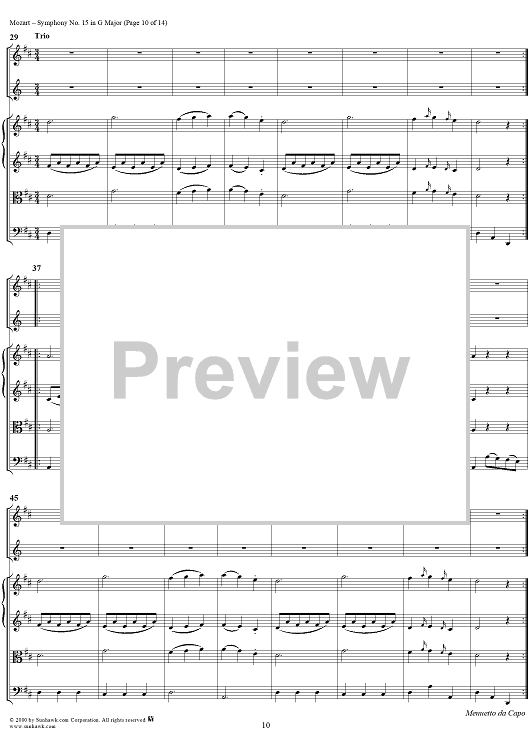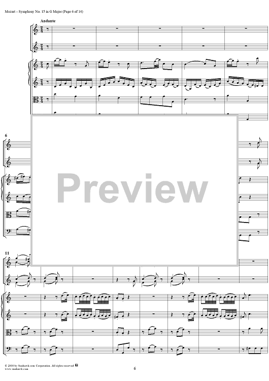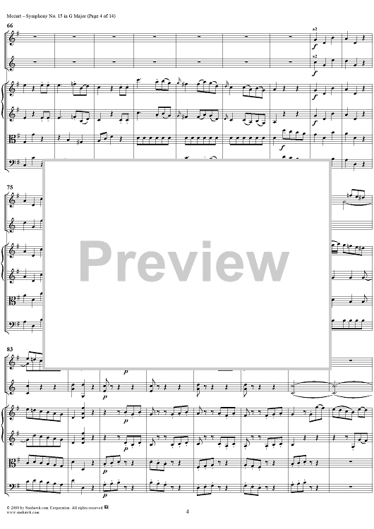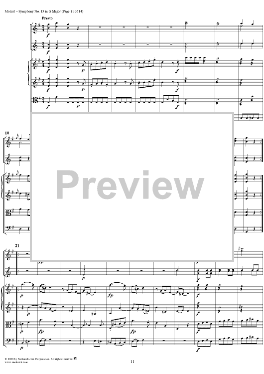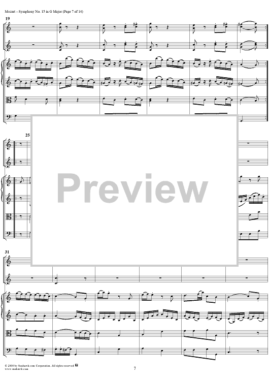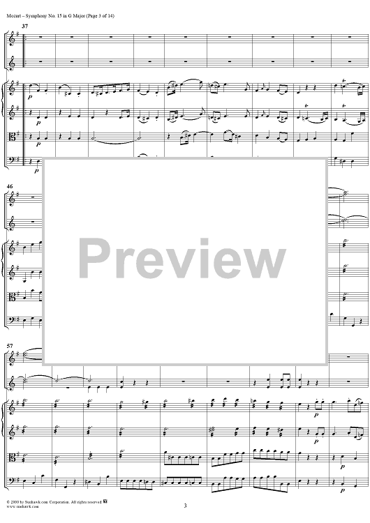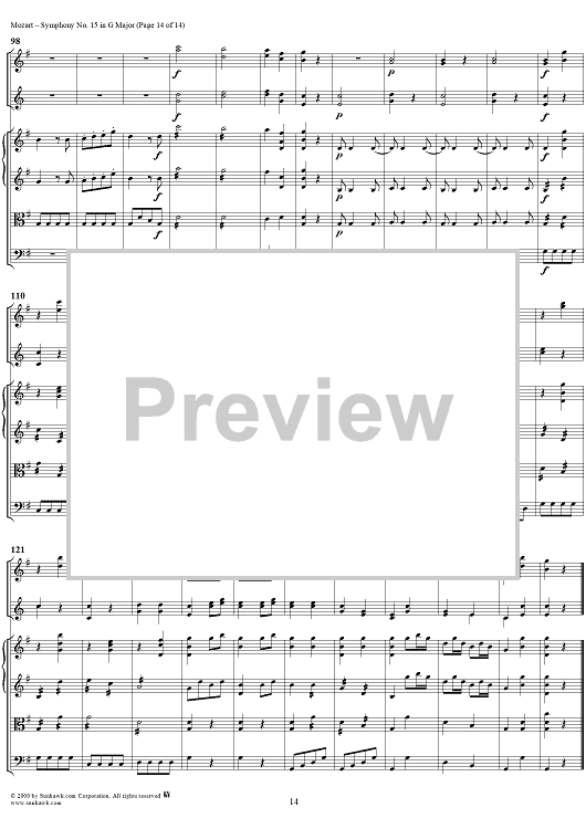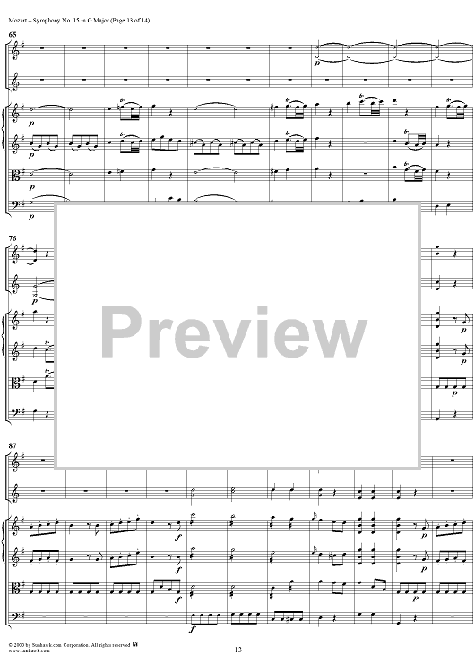 Digital Sheet Music for Symphony No. 15 in G Major, K124 - Full Score by Wolfgang Amadeus Mozart scored for Orchestra; id:198193