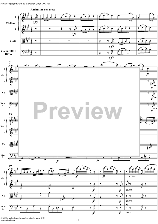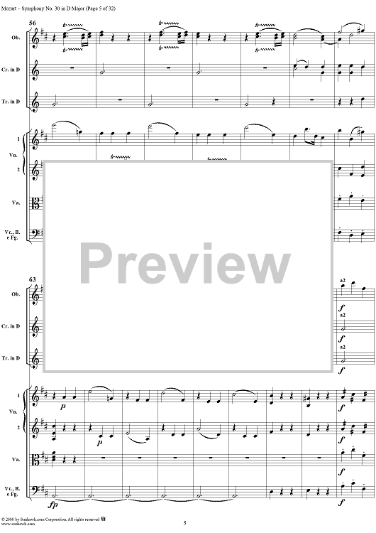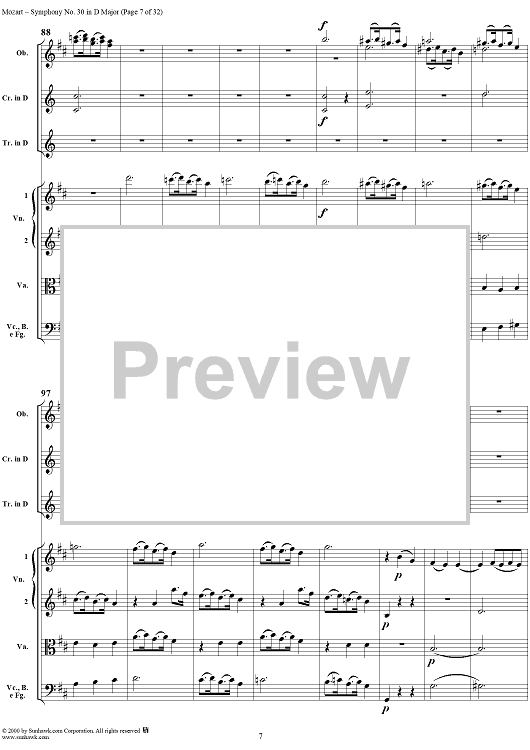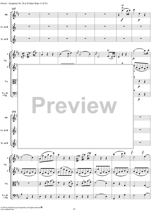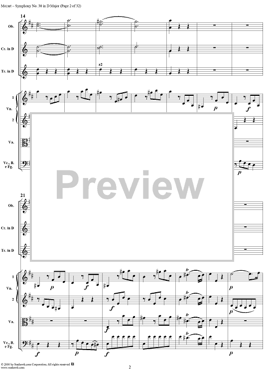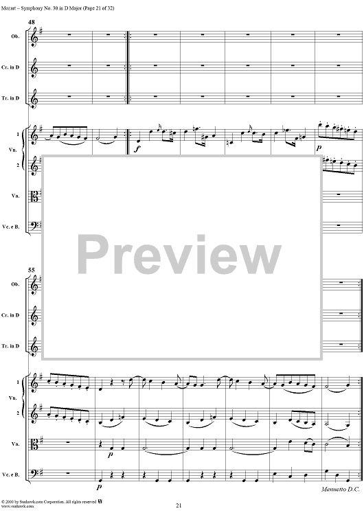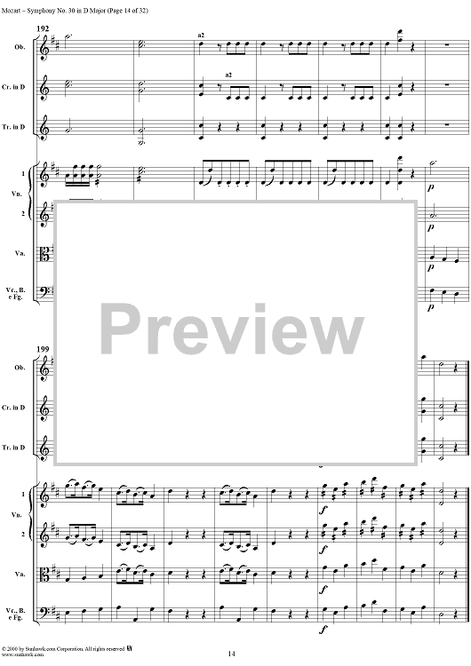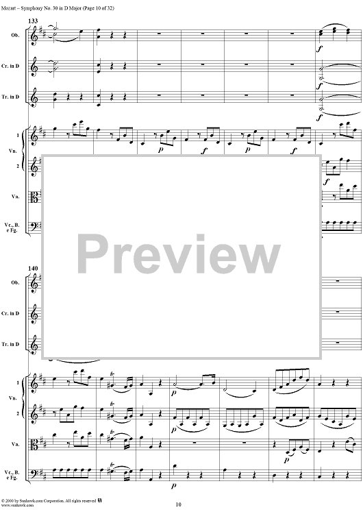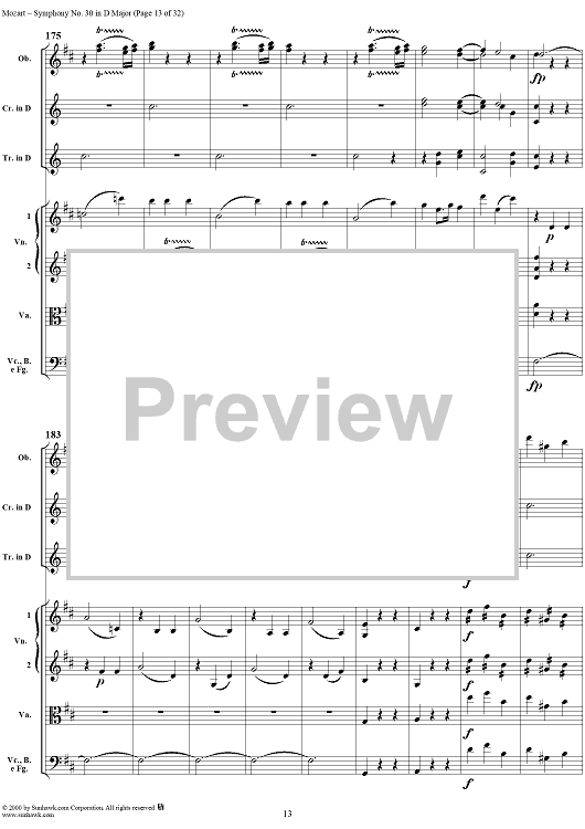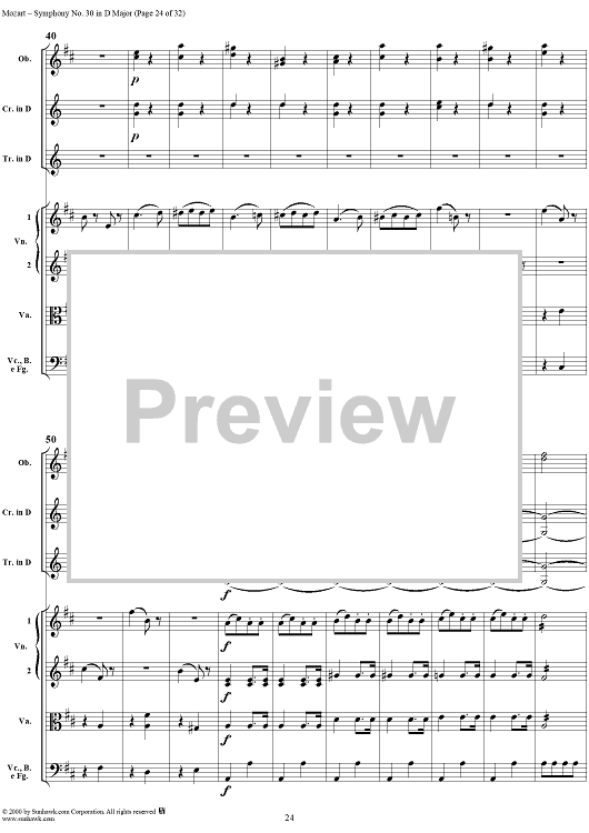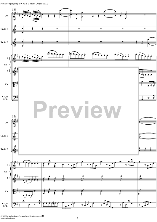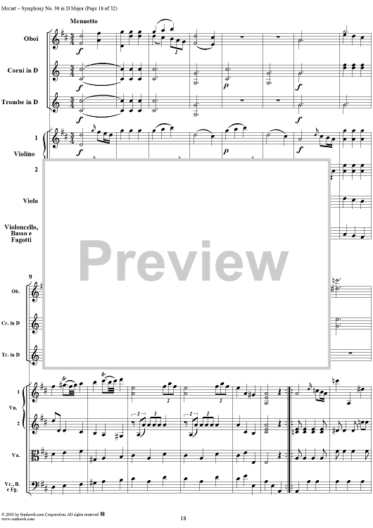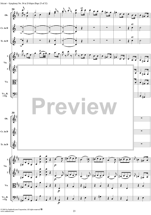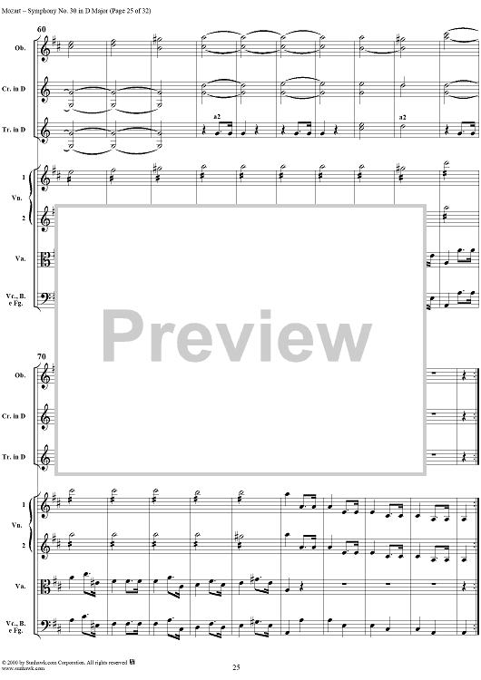 Digital Sheet Music for Symphony No. 30 in D Major, K202 - Full Score by Wolfgang Amadeus Mozart scored for Orchestra; id:252525