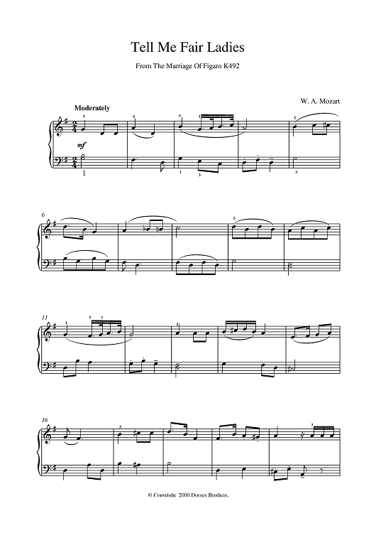 "Tell Me Fair Ladies" Sheet Music by Wolfgang Amadeus Mozart