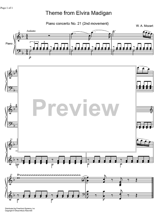 Digital Sheet Music for Theme from Elvira Madigan KV467 by Wolfgang Amadeus Mozart, SMN Archive Collection scored for Piano Solo; id:325024