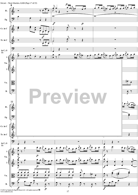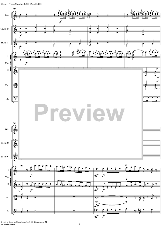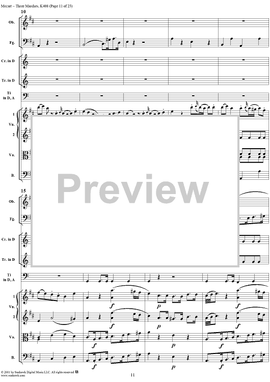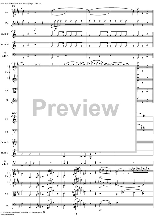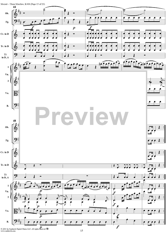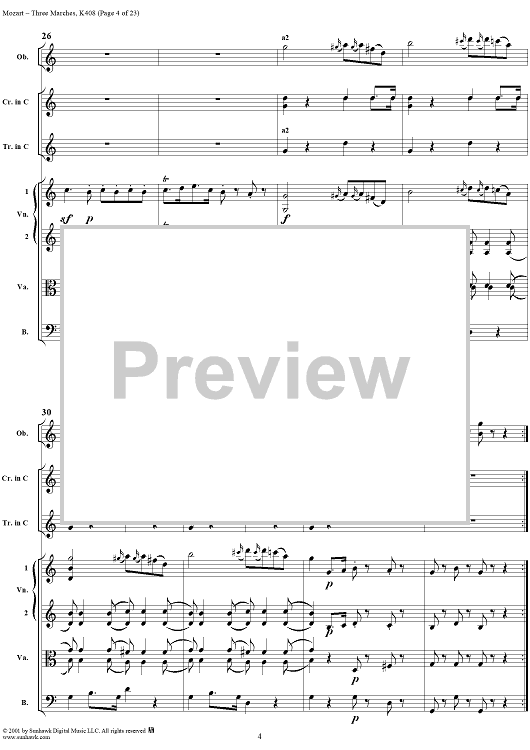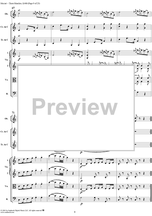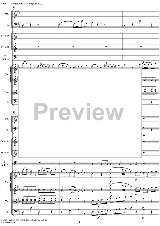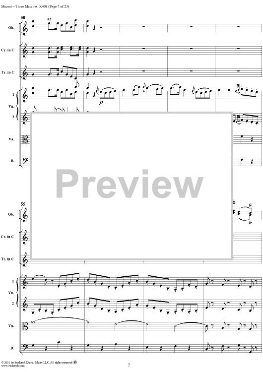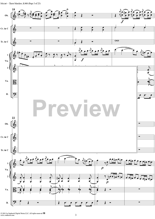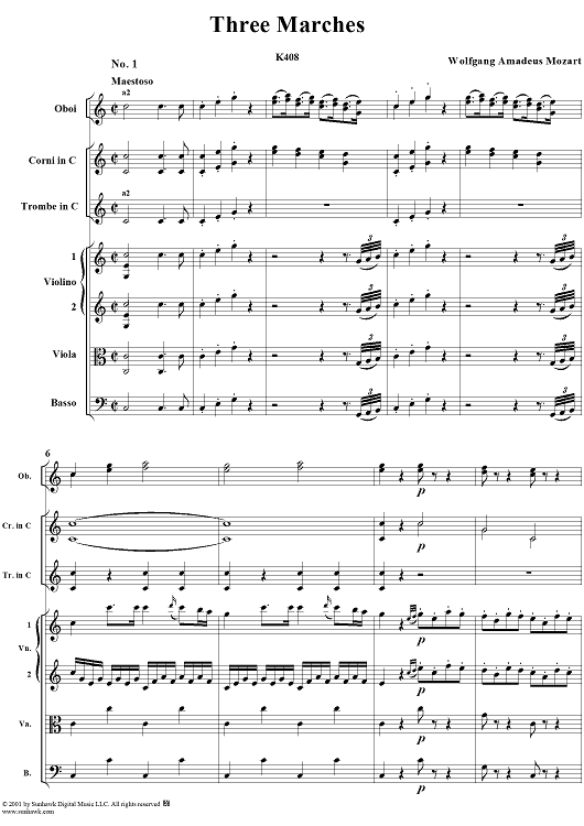 Digital Sheet Music for Three Märsch, K408 by Wolfgang Amadeus Mozart scored for Orchestra; id:266237