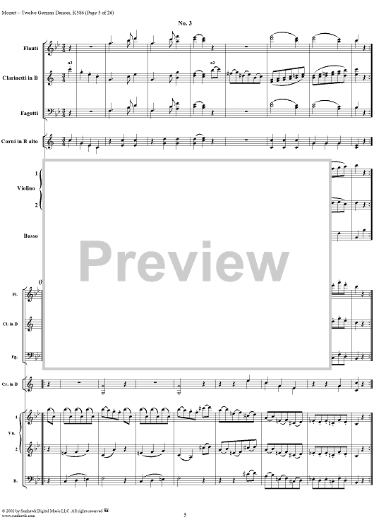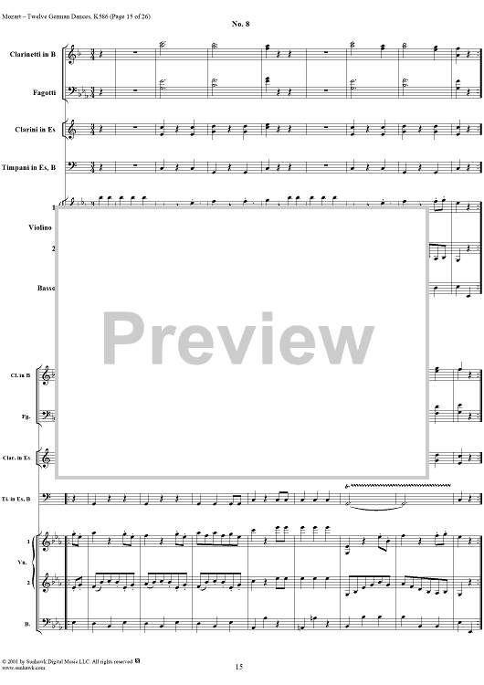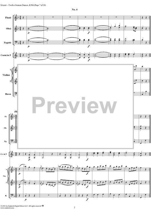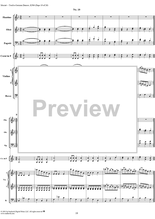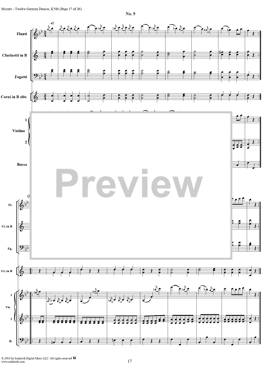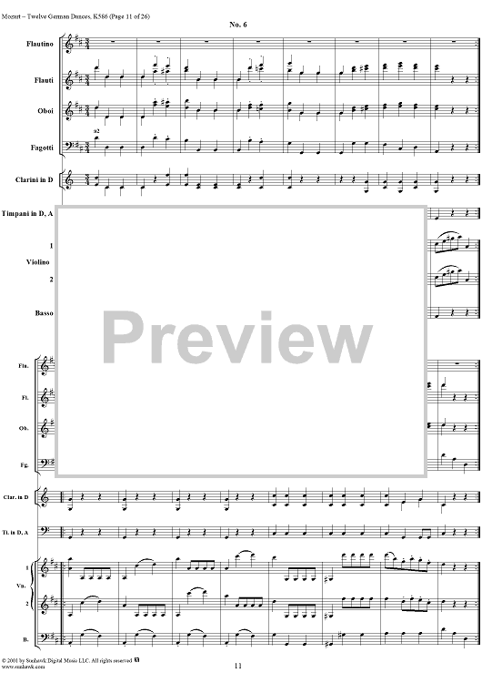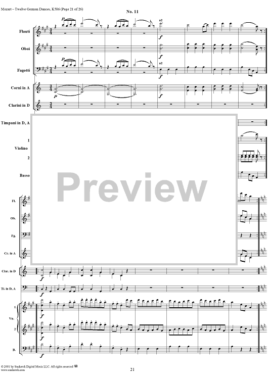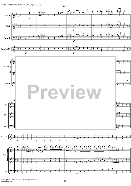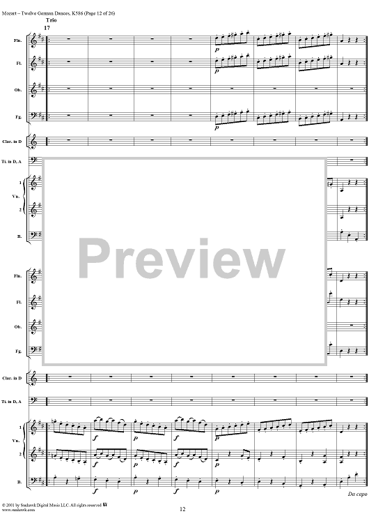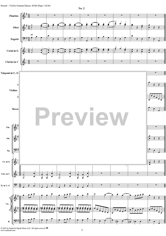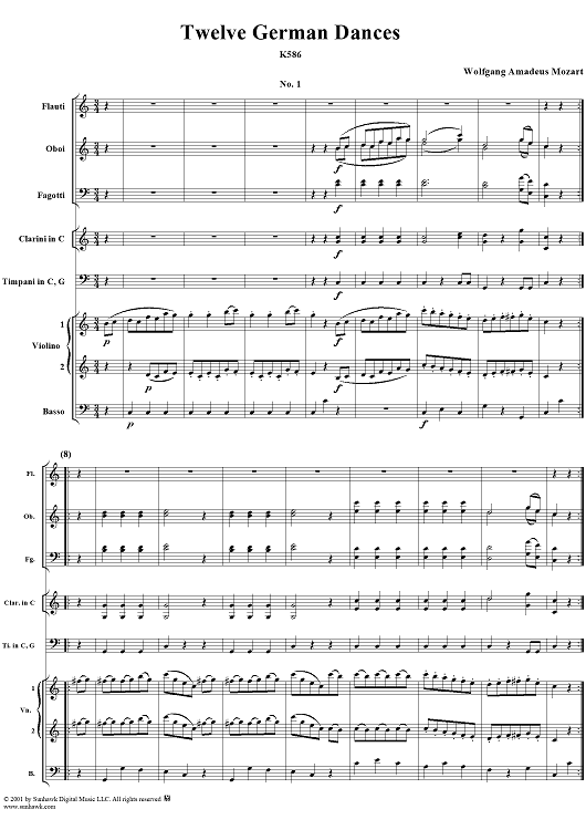 Digital Sheet Music for Twelve Deutsche Tänze, K586 by Wolfgang Amadeus Mozart scored for Orchestra; id:255278