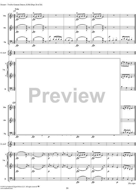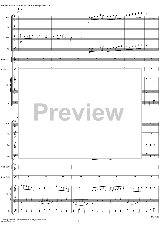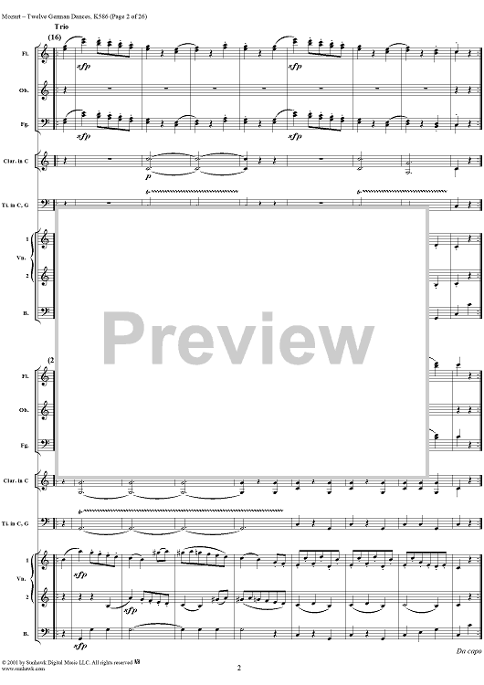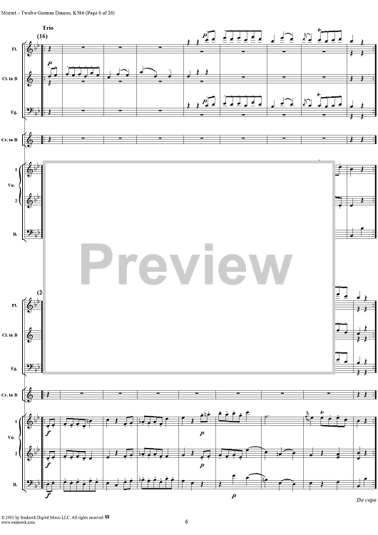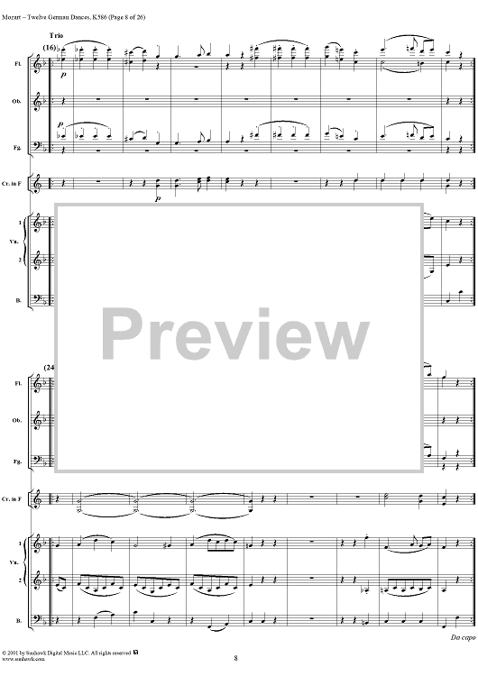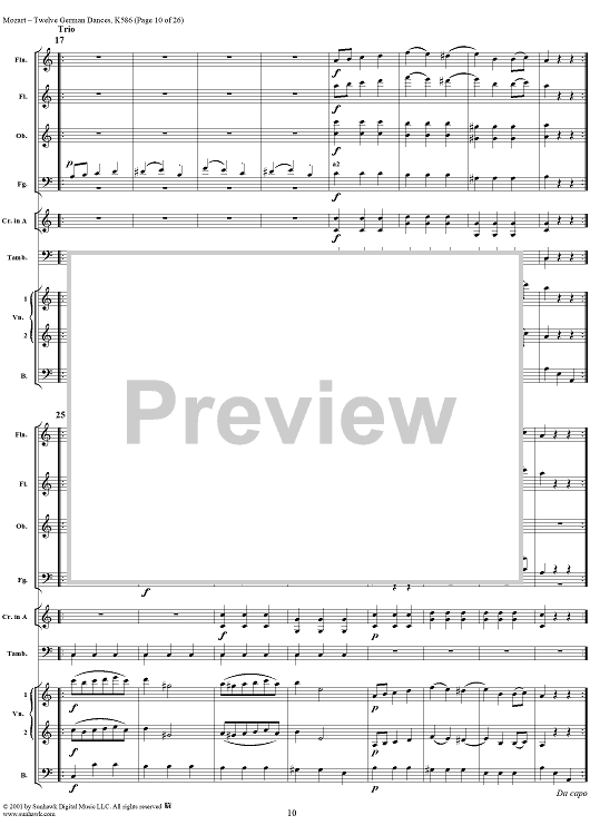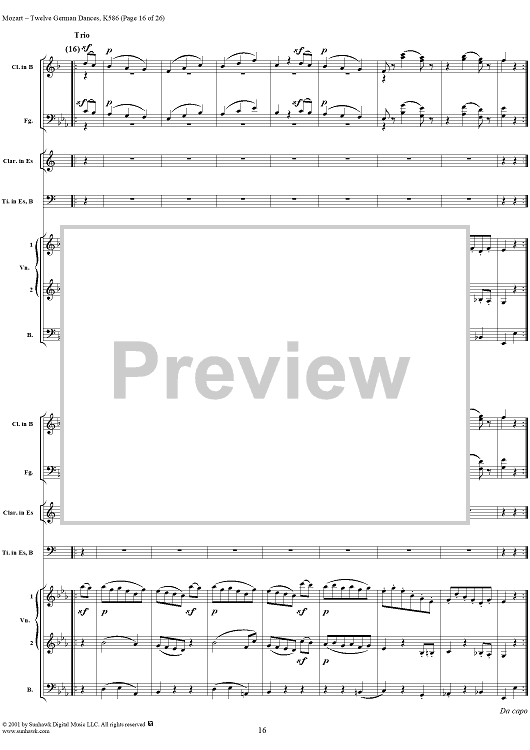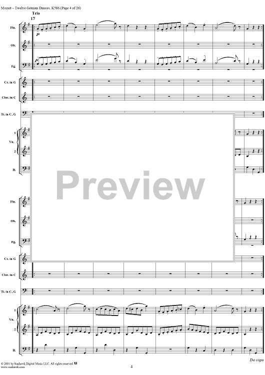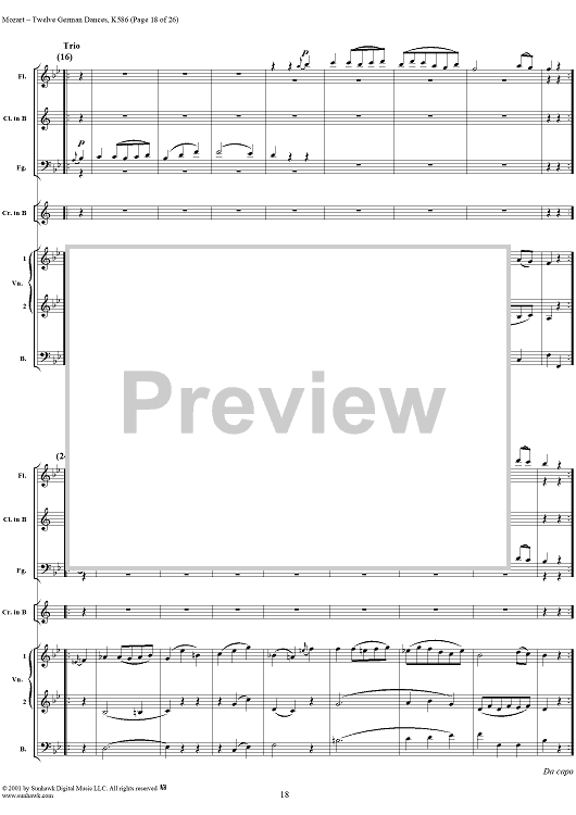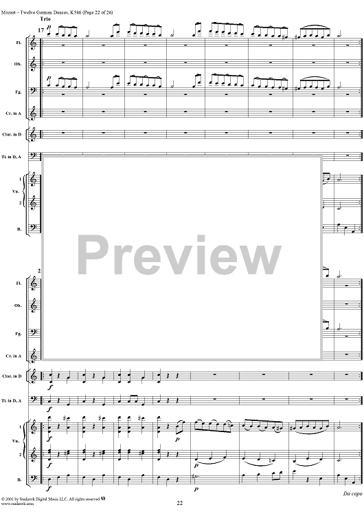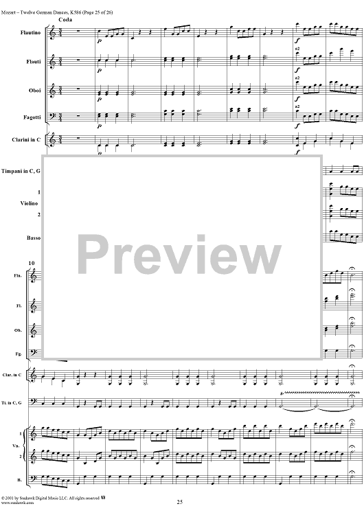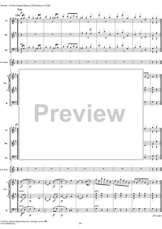 Digital Sheet Music for Twelve Deutsche Tänze, K586 by Wolfgang Amadeus Mozart scored for Orchestra; id:255278