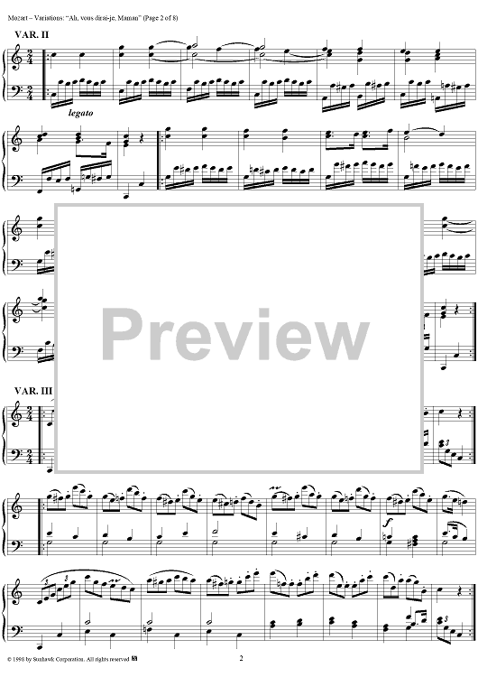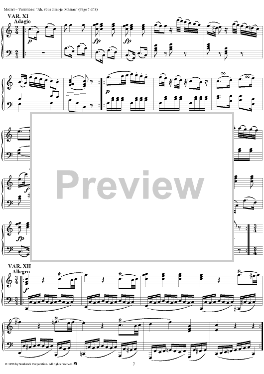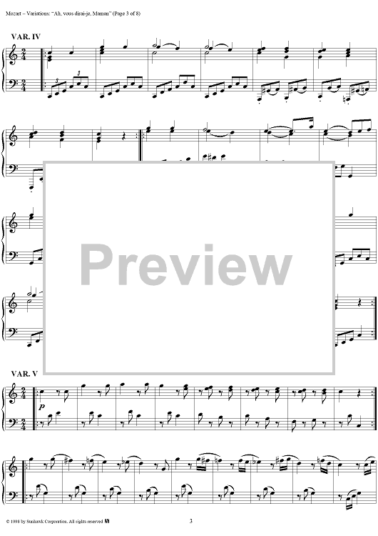 Digital Sheet Music for Twelve Variations on French Song "Ah, vous dirai-je, Maman," K265 (K300e) by Wolfgang Amadeus Mozart scored for Piano Solo; id:94431