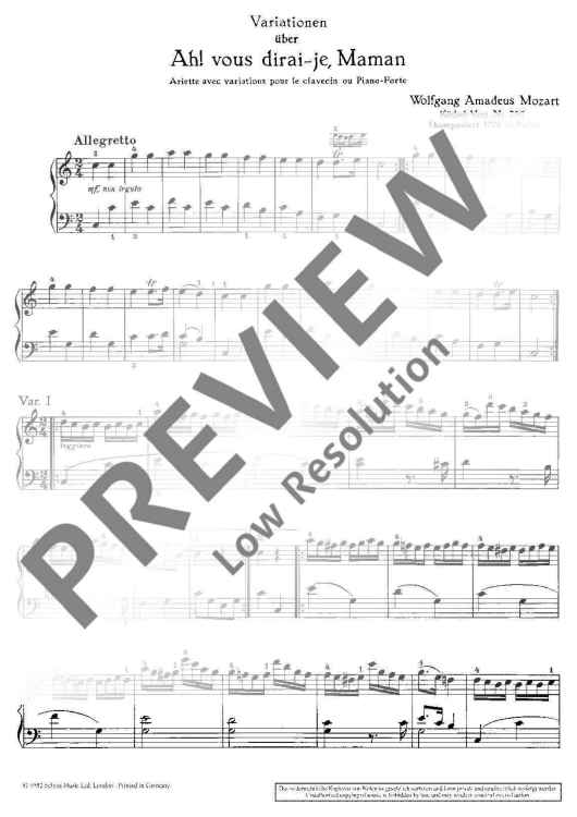Digital Sheet Music for Variations "Ah! vous dirai-je, Maman" by Wolfgang Amadeus Mozart scored for Piano; id:474985