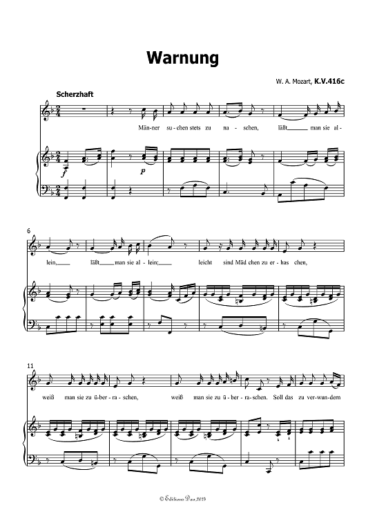 "Warnung" K.V.416c, in F Major, for Voice and Piano
