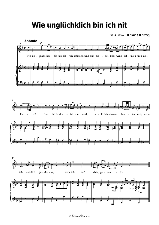 "Wie ungluchklich bin ich nit" K.147,K.125g, in F Major, for Voice and Piano