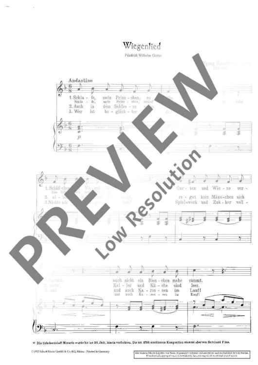 "Wiegenlied" Sheet Music by Wolfgang Amadeus Mozart