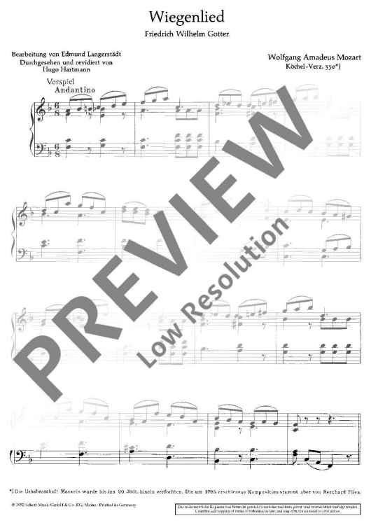 Digital Sheet Music for Wiegenlied by Wolfgang Amadeus Mozart, Edmund Langerstaedt scored for Piano (with Text); id:474834