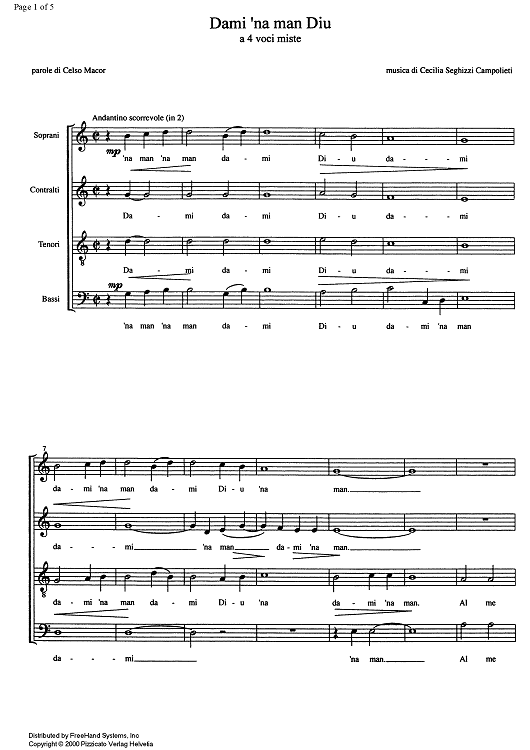 "Dami 'na man Diu" Sheet Music by Cecilia Seghizzi Campolieti