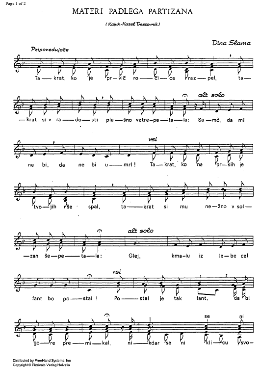 Digital Sheet Music for Materi Padlega Partizana by , Dina Slama scored for Female Chorus; id:334440