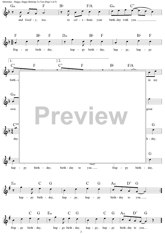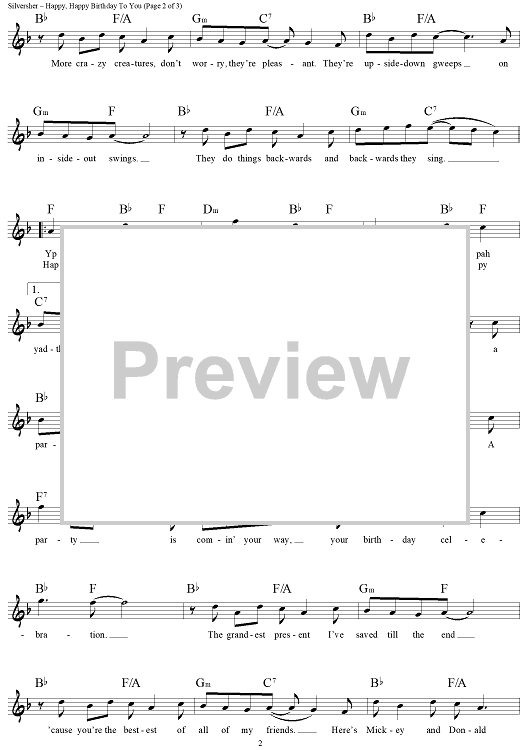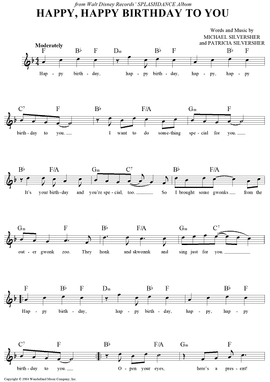 Digital Sheet Music for Happy, Happy Birthday To You by Michael Silversher, Patricia Silversher scored for Lead Sheet; id:441354