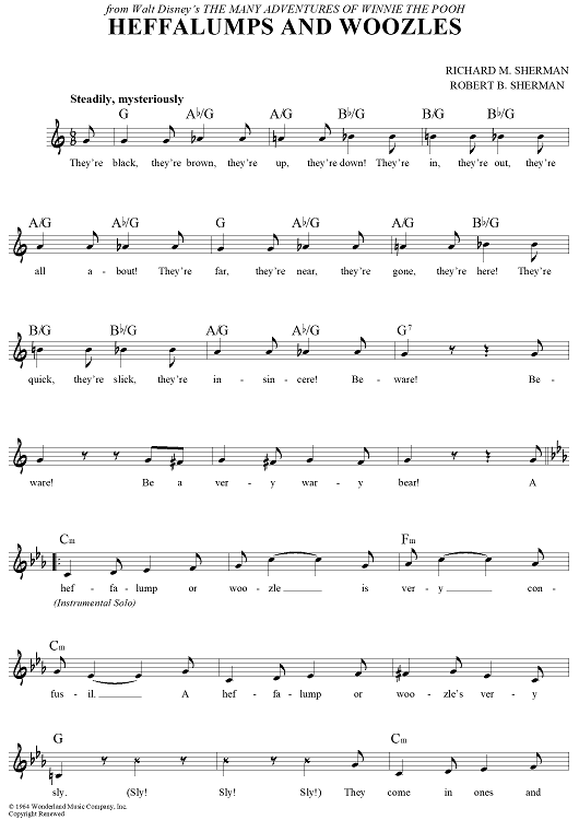 Digital Sheet Music for Heffalumps And Woozles by Richard M. Sherman, Robert B. Sherman scored for Lead Sheet; id:441357