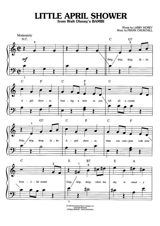 Digital Sheet Music for Little April Shower by Larry Morey, Frank Churchill scored for Big Note Piano; id:445119