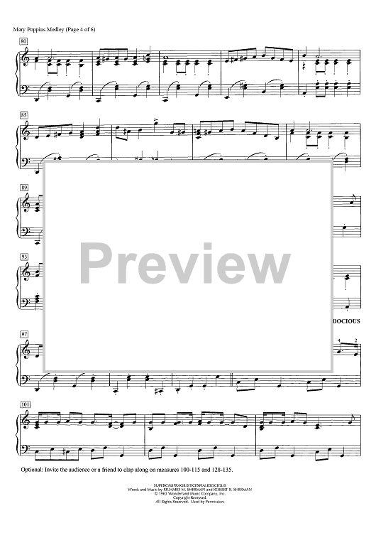 "Mary Poppins Medley" Sheet Music by Robert B. Sherman