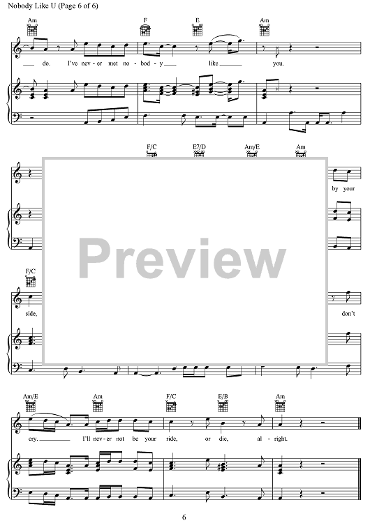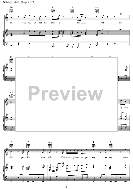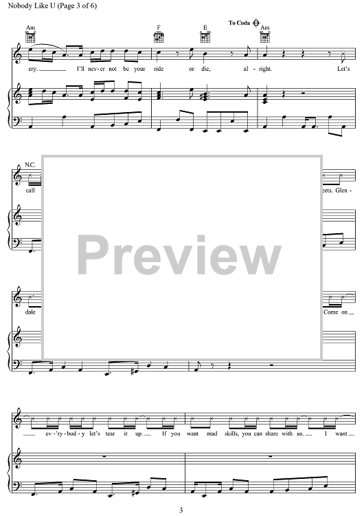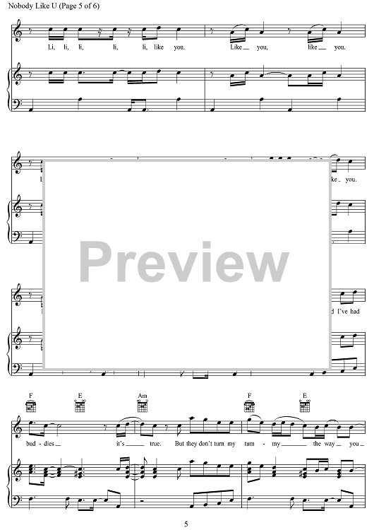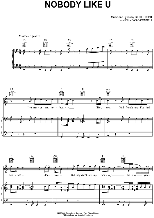 Digital Sheet Music for Nobody Like U by Billie Eilish, Finneas O'Connell scored for Piano/Vocal/Chords; id:484226