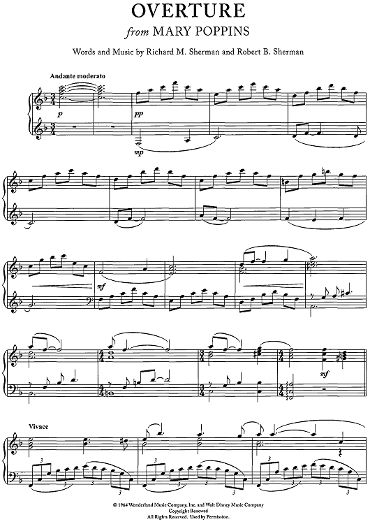 "Overture - from Mary Poppins" Sheet Music by Richard M. Sherman