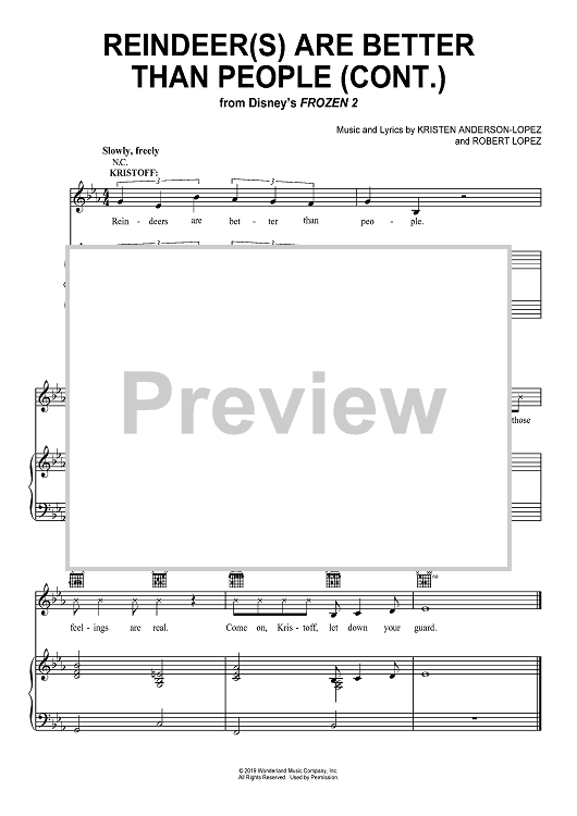 Digital Sheet Music for Reindeer(s) Are Better Than People (Cont.) from Disney's Frozen 2 by Robert Lopez, Kristen Anderson-Lopez scored for Piano/Vocal/Chords; id:467905