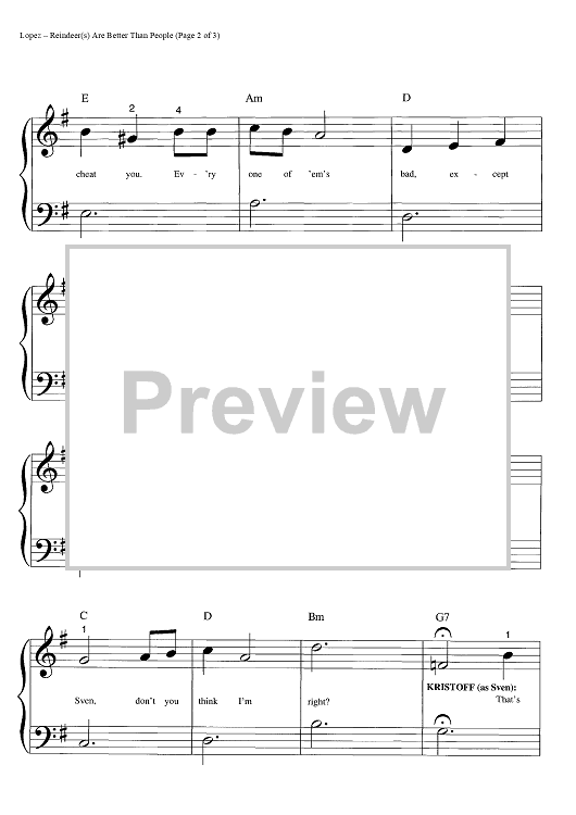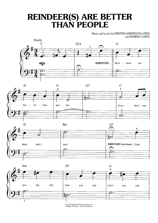 "Reindeer(s) Are Better Than People" Sheet Music by Robert Lopez
