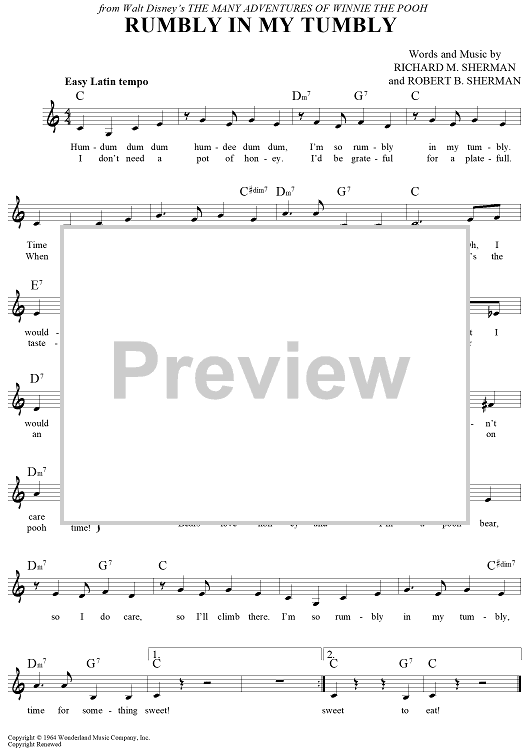 Digital Sheet Music for Rumbly In My Tumbly by Richard M. Sherman, Robert B. Sherman scored for Lead Sheet; id:444202