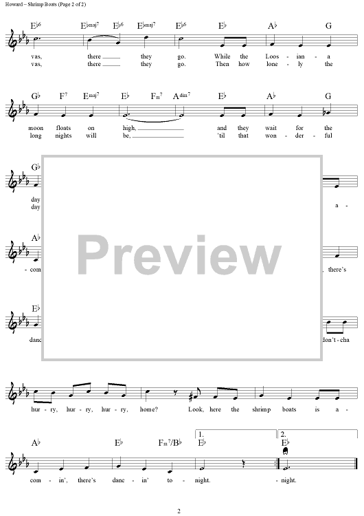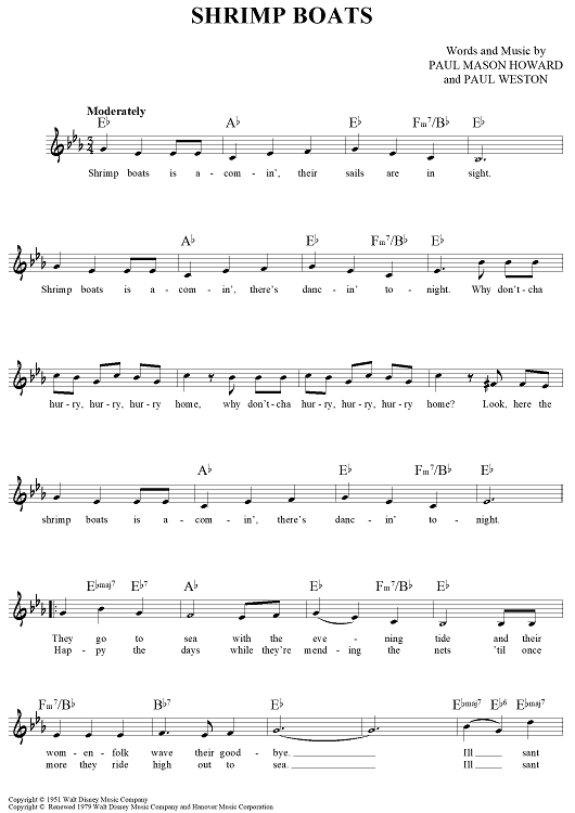 Digital Sheet Music for Shrimp Boats by Paul Weston, Paul Mason Howard, Dolores Gray scored for Lead Sheet; id:444726