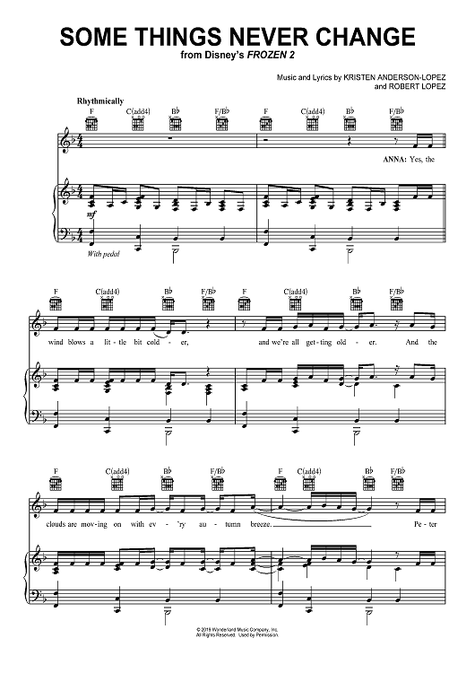 Digital Sheet Music for Some Things Never Change from Disney's Frozen 2 by Robert Lopez, Kristen Anderson-Lopez scored for Piano/Vocal/Chords; id:467907