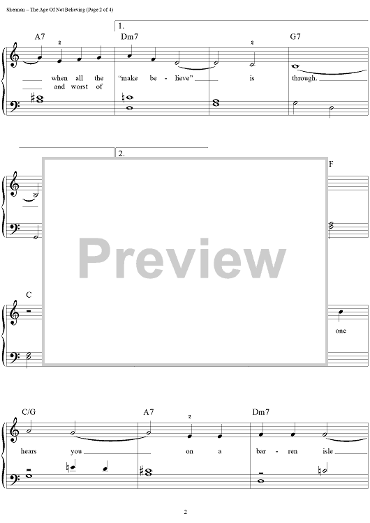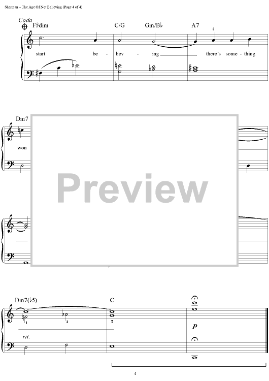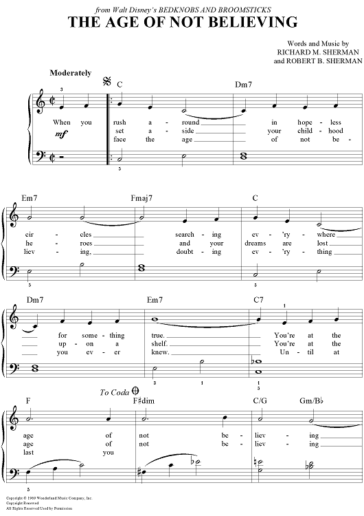Digital Sheet Music for The Age Of Not Believing by Richard M. Sherman, Robert B. Sherman scored for Easy Piano/Vocal/Chords; id:448470