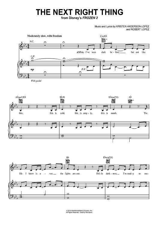 Digital Sheet Music for The Next Right Thing from Disney's Frozen 2 by Robert Lopez, Kristen Anderson-Lopez scored for Piano/Vocal/Chords; id:467908