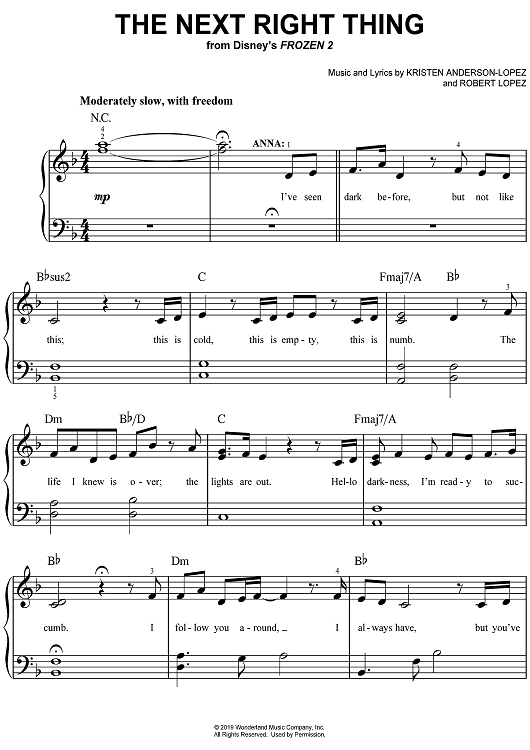 Digital Sheet Music for The Next Right Thing from Disney's Frozen 2 by Robert Lopez, Kristen Anderson-Lopez scored for Easy Piano/Vocal/Chords; id:467953