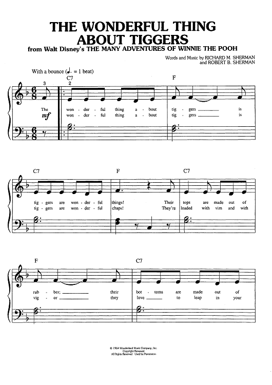 Digital Sheet Music for The Wonderful Thing About Tiggers by Richard M. Sherman, Robert B. Sherman scored for Big Note Piano; id:444922