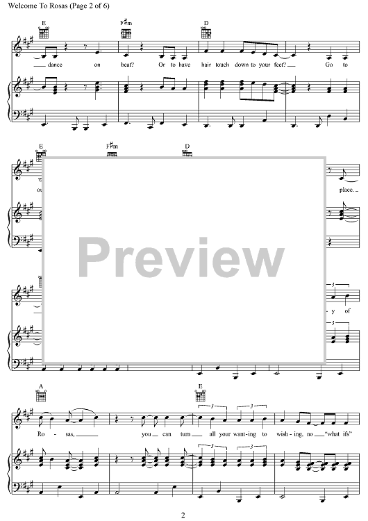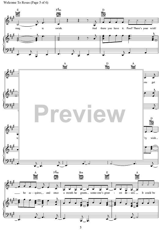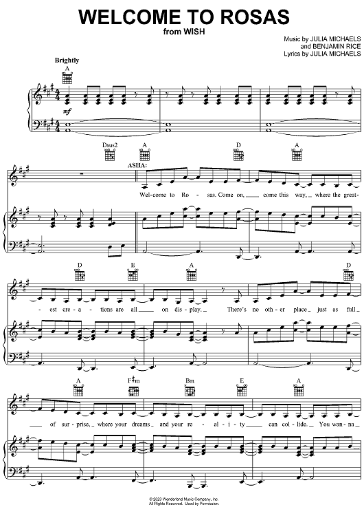 Digital Sheet Music for Welcome To Rosas - from Wish by Julia Michaels, Benjamin Rice scored for Piano/Vocal/Chords; id:501173