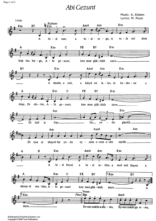 "Abi Gezunt" Sheet Music by Abraham Ellstein