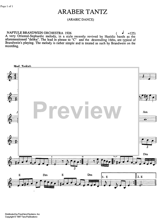 Digital Sheet Music for Araber Tantz (Arabic Dance) by , Traditional scored for Any Klezmer instrumentation; id:337956