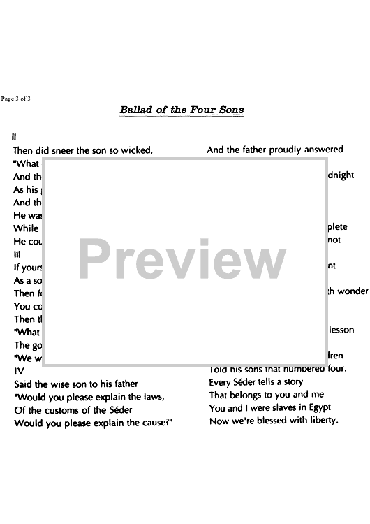 "Ballad Of The Four Sons" Sheet Music by H. Coopersmith