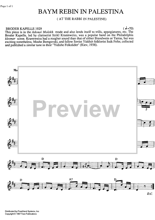 Digital Sheet Music for Baym rebin in Palestina (At the Rabbi in Palestine) by , Traditional scored for Any Klezmer instrumentation; id:337950