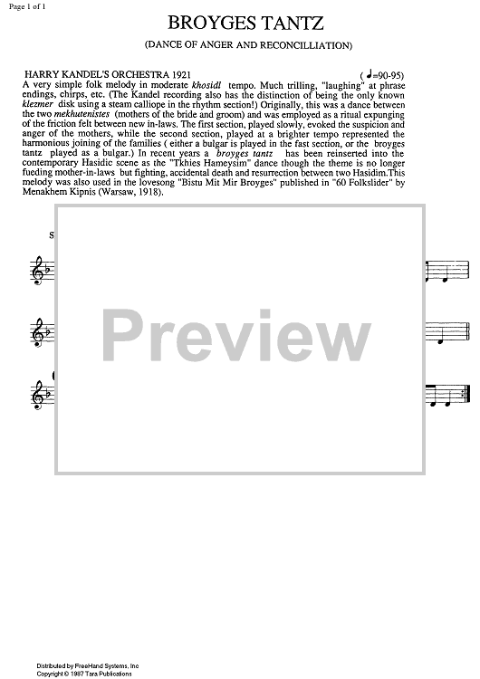 Digital Sheet Music for Broyges Tantz (Dance of Anger and Reconcilliation) by , Traditional scored for Any Klezmer instrumentation; id:337965