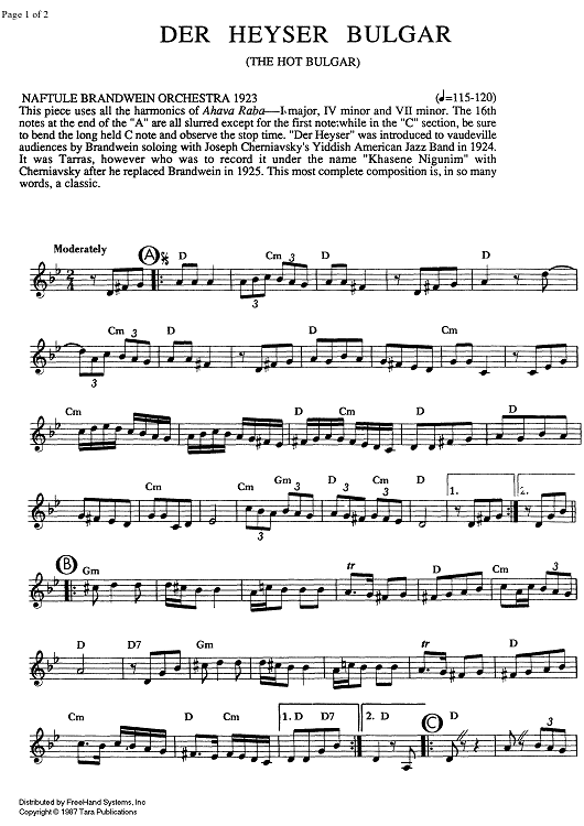 Digital Sheet Music for Der heyser bulgar (The Hot Bulgar) by , Traditional scored for Any Klezmer instrumentation; id:337941